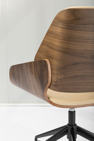 Premium Ergonomic Office Chair -Walnut & Leather Executive Chair - Ergonomic Office Chair with Silent Wheels