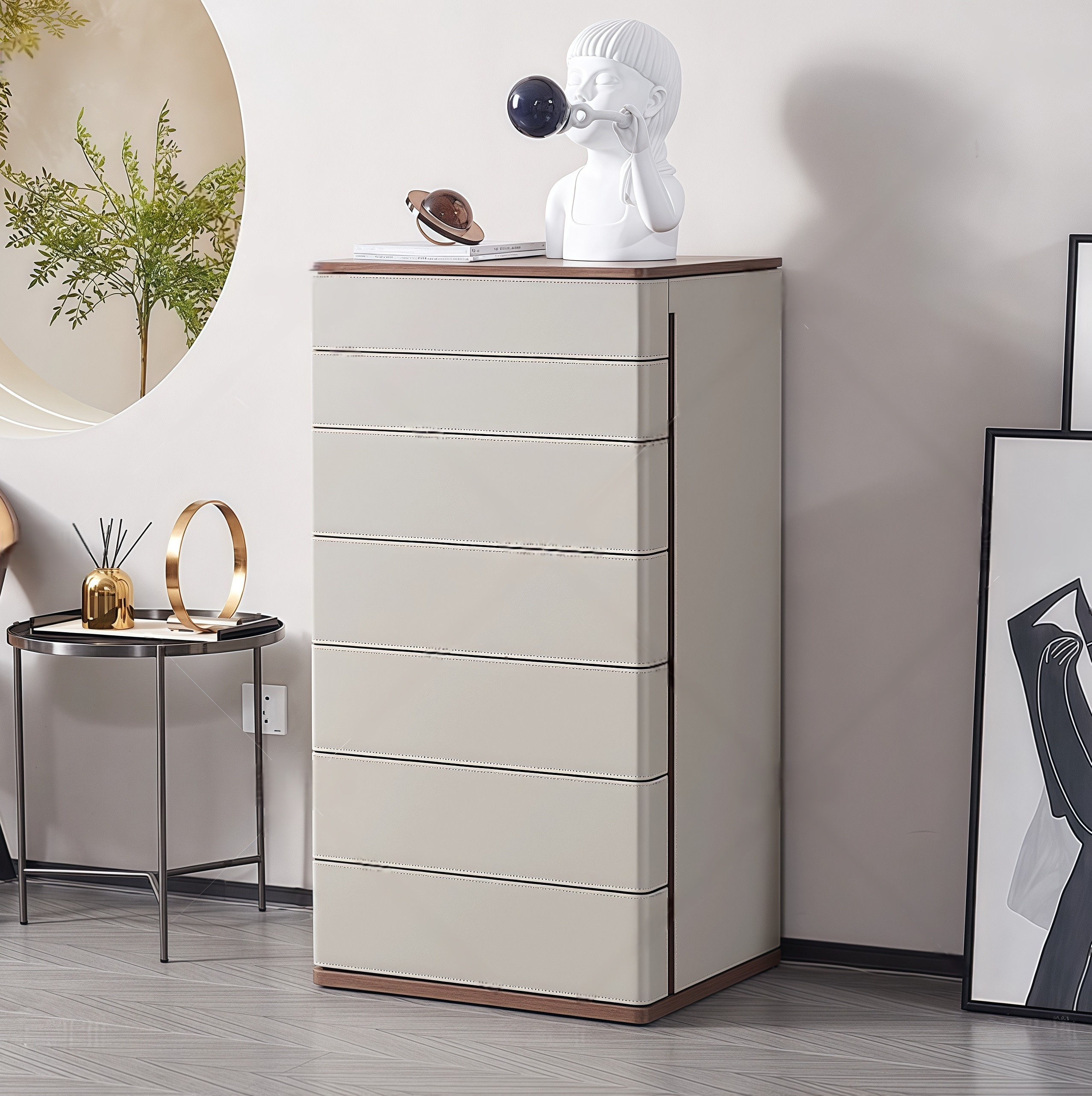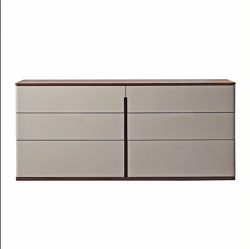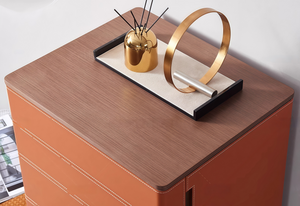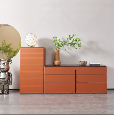 Modern Leather & Wood Chest of Drawers