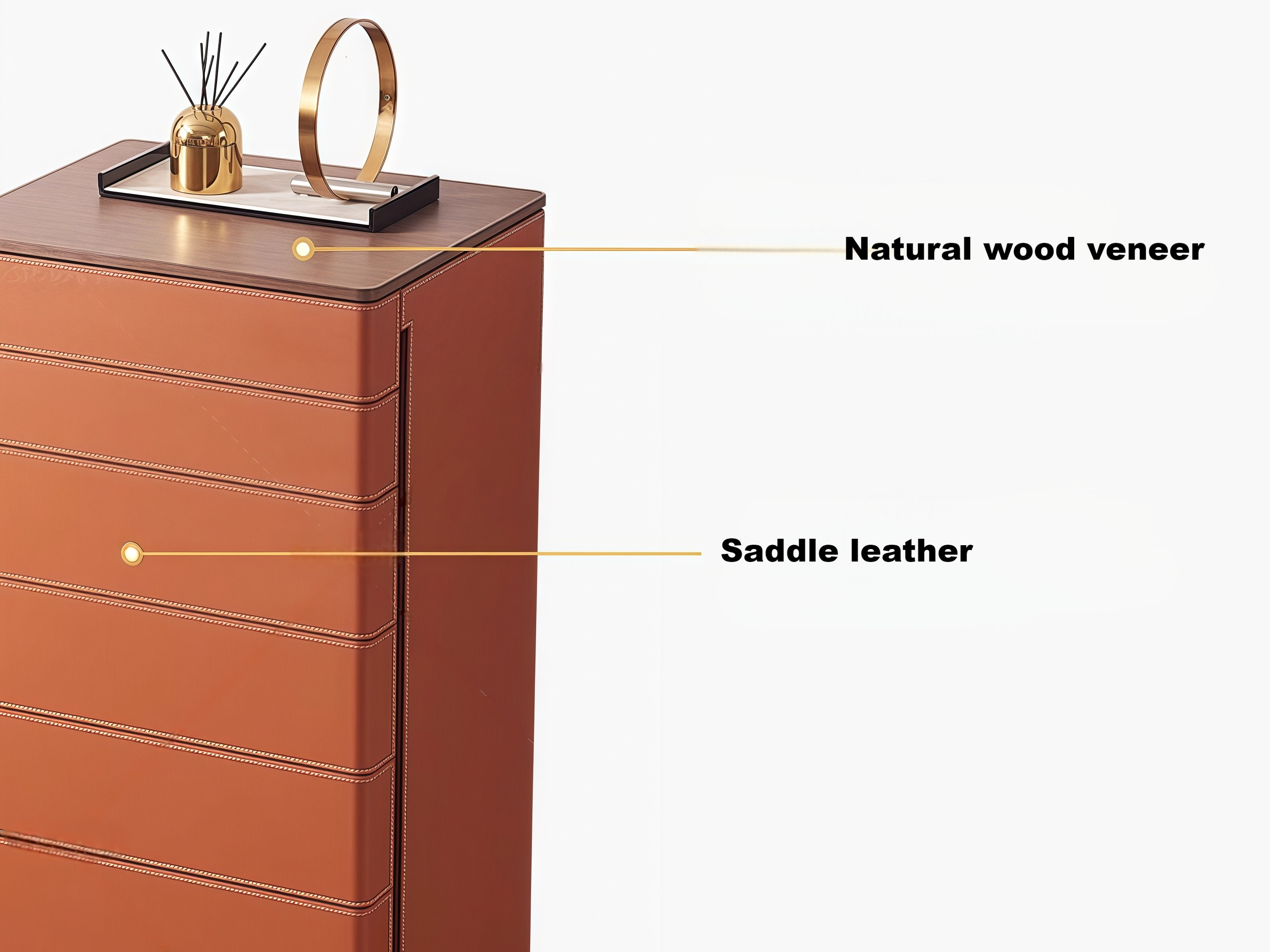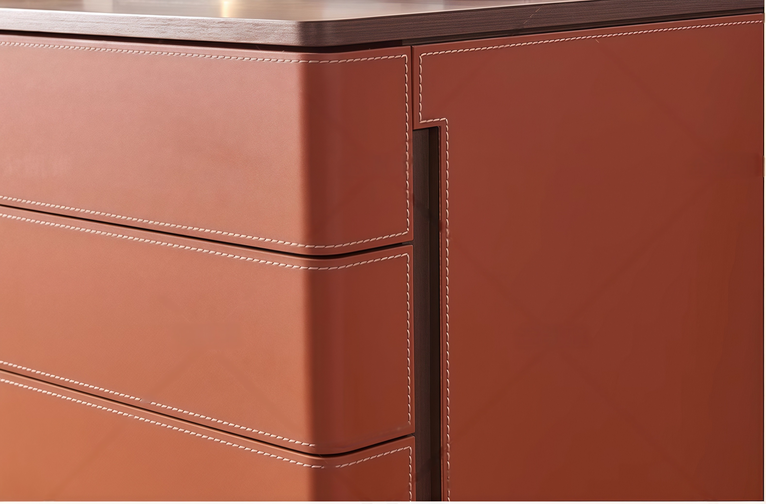 Italian minimalist saddle leather storage cabinet