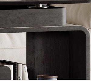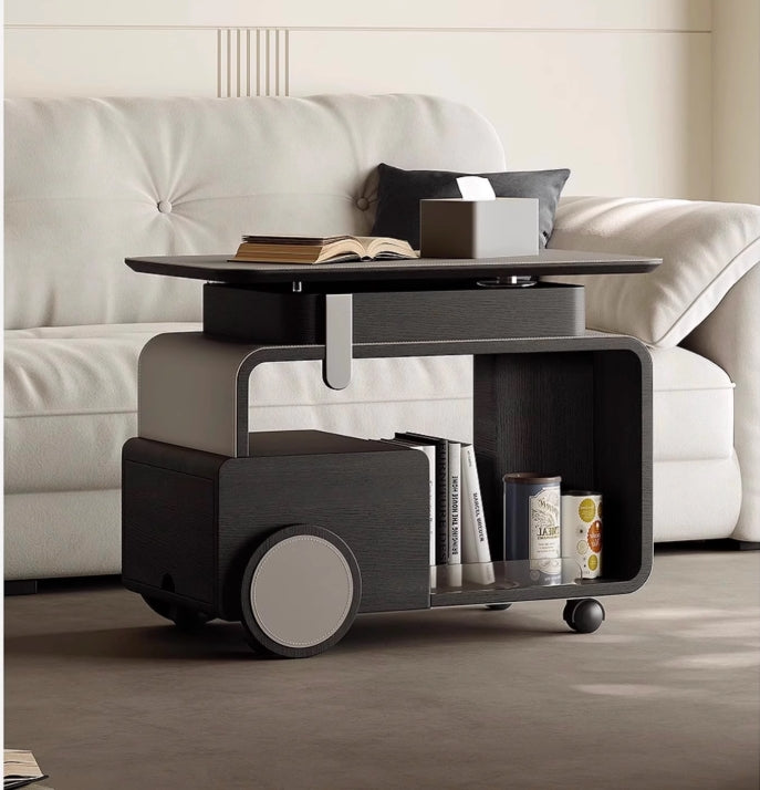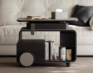 This visionary three-in-one storage system redefines adaptive living through its patent-pending TriLock Modularity – seamlessly combining a bar cart, side table, and lift-top console into one cohesive unit. The core structure utilizes PANTONE-certified graphite gray MDF with scratch-resistant nano-coating, accented by espresso-toned walnut veneer panels.