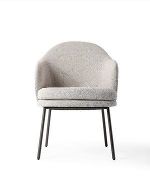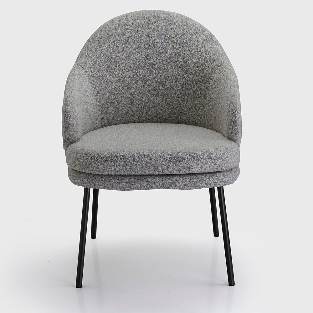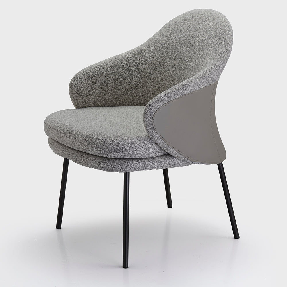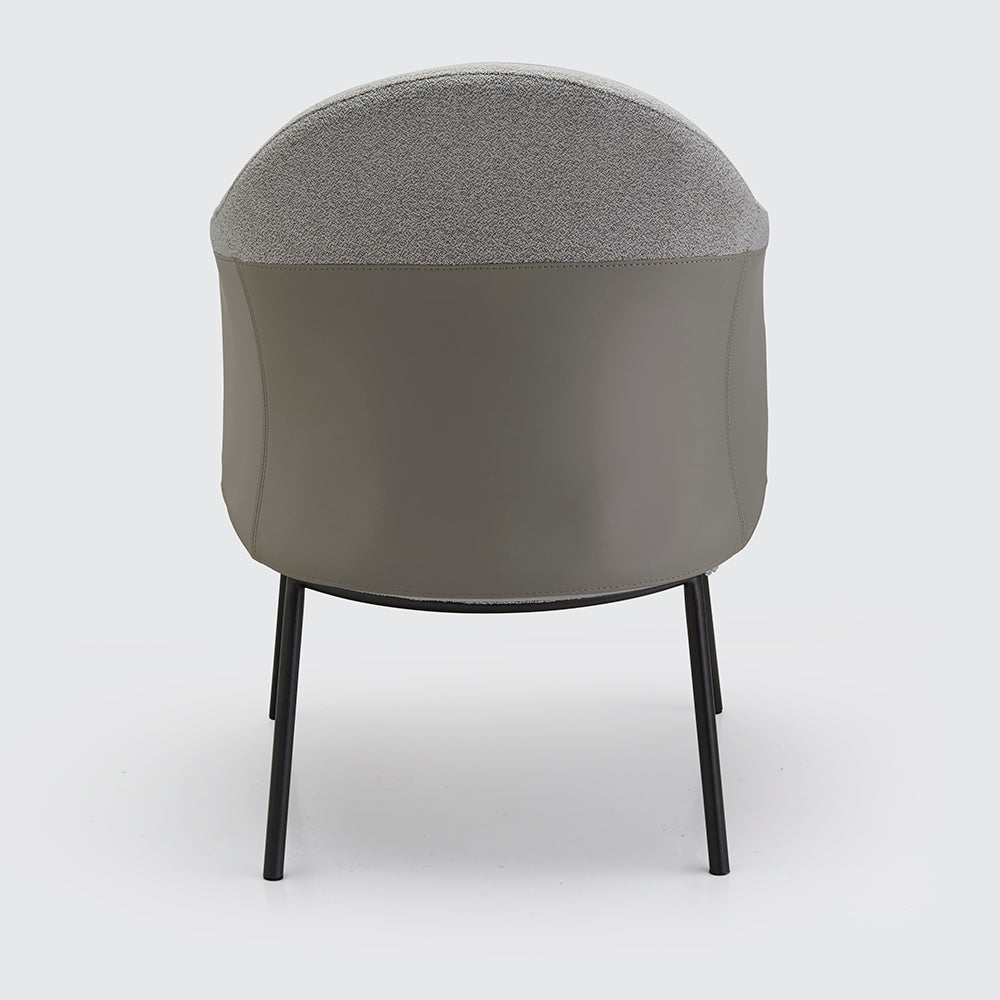 Modern Fabric Armchair - Gray Woven Texture with Leather Trim & Black Metal Legs
