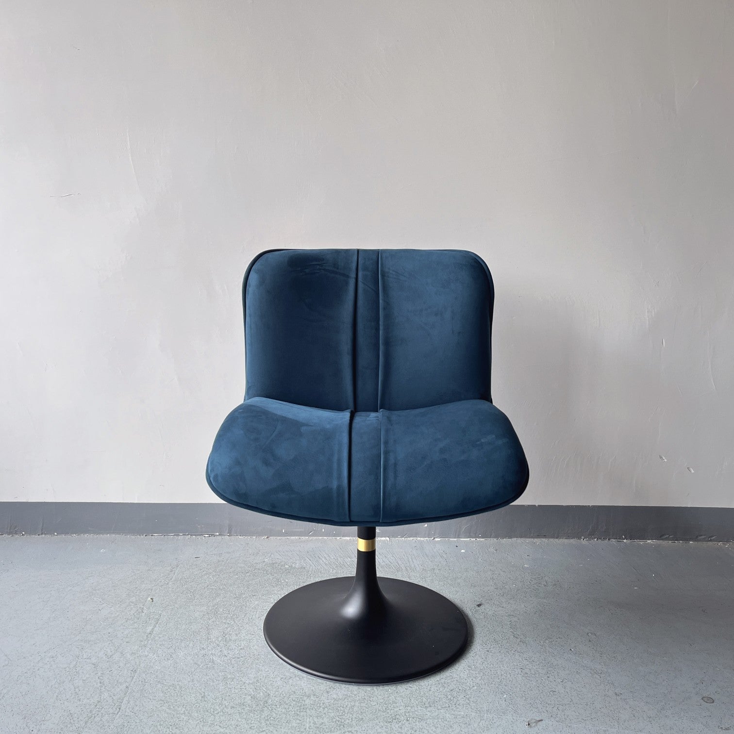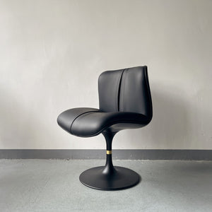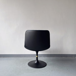 Contemporary Swivel Armchair – Glossy White Upholstery + Matte Black Pedestal Base – Sleek Office Reading Chair