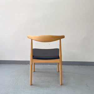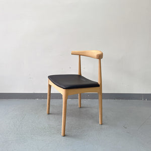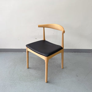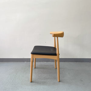 Solid Wood Frame Leather Chair – Scandinavian Modern Dining Chair with Padded Black Seat – Natural Oak & Ergonomic Backrest