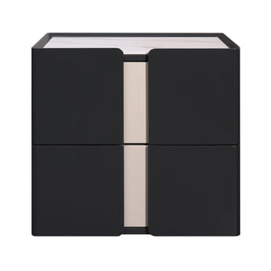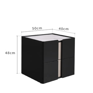 Sleek Black Nightstand - Push-to-Open Drawer Bedside Cabinet with Stone Top