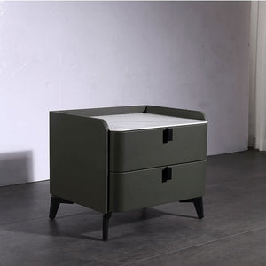 TIAN JI Modern Nightstand - Leather-Wrapped Bedside Table with Marble Top & Black Handles
