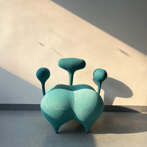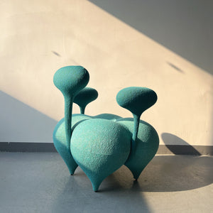 Biomorphic Lounge Chair – Mint Velvet Upholstery with Organic Modular Forms – Avant-Garde Sculptural Seating