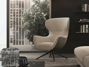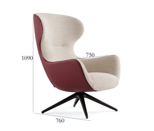 Velvet-Soft Dual-Tone Swivel Chair - Wine Red Leather Arms & Beige Fabric Seat with Star Base Metal Frame for Luxury Living Room