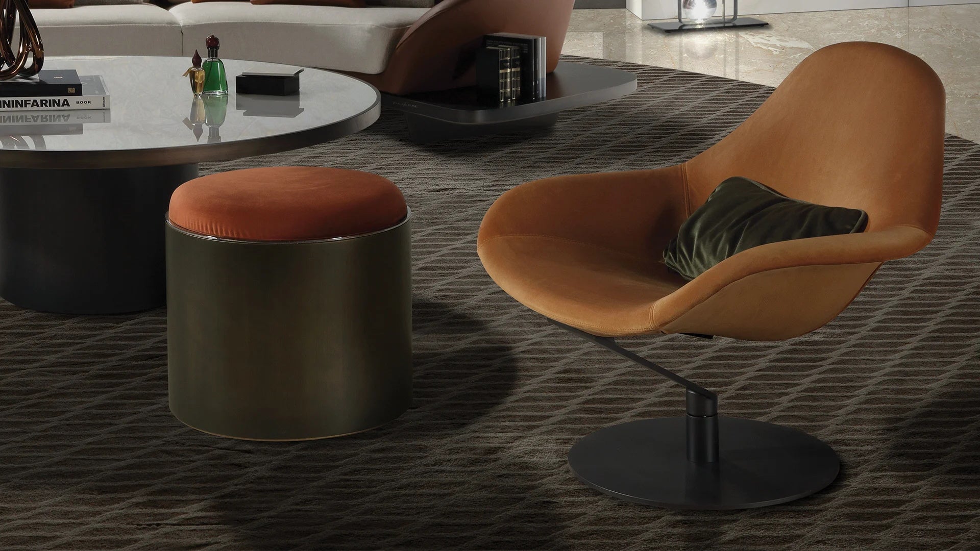 Burgundy Velvet Swivel Armchair - Ergonomic Contoured Back & Solid Brass Base | 360° Silent Rotation for Modern Living Room