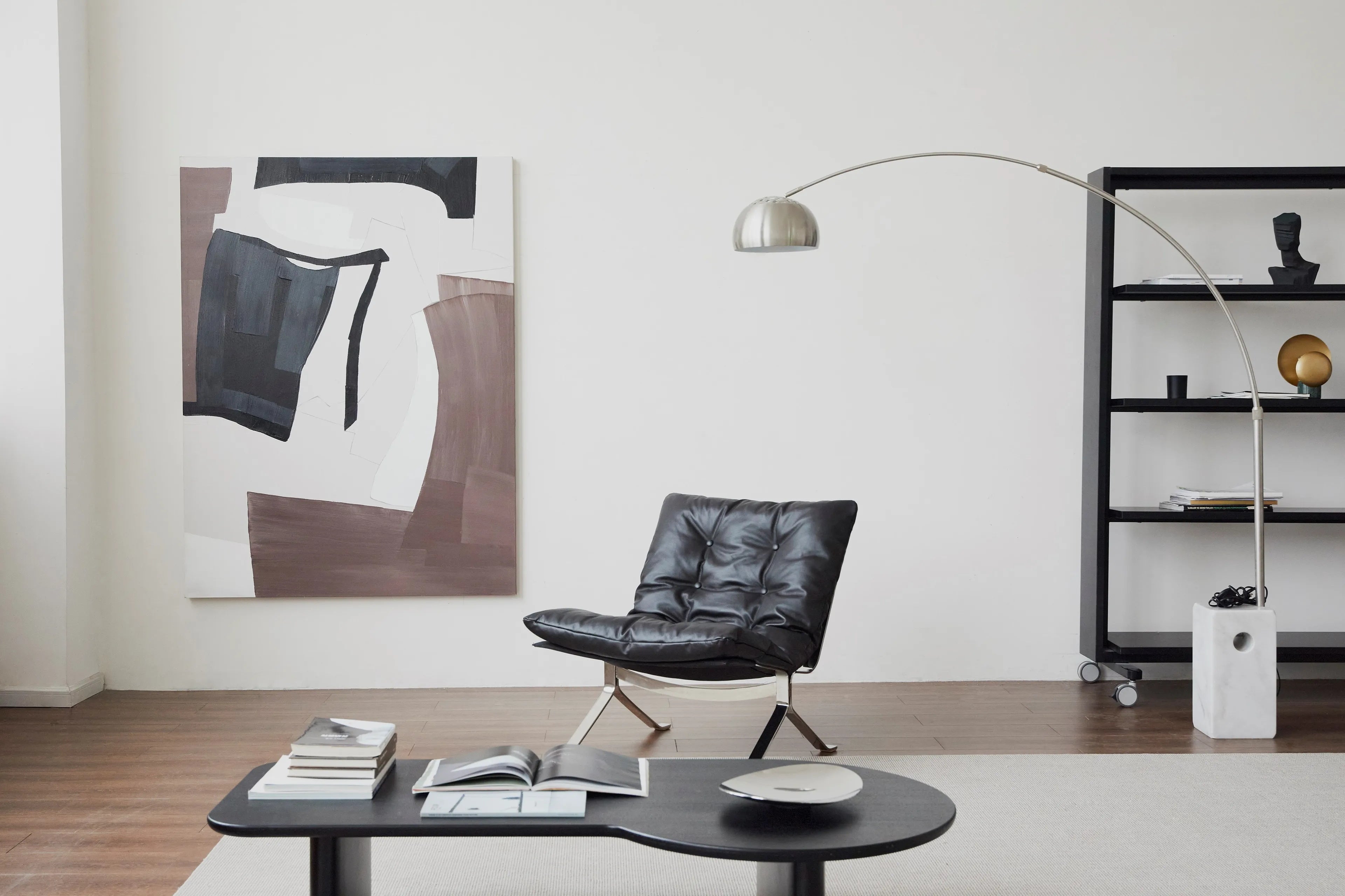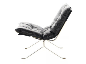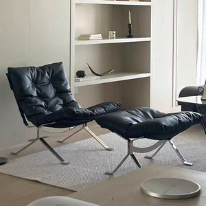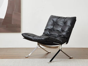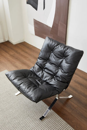 Modern Black Leather Lounge Chair - Diamond-Button Tufted Design & Glossy Chrome Metal Legs for Luxury Living Room