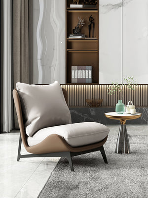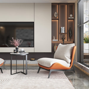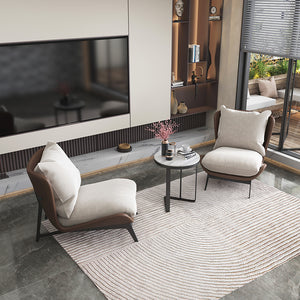 Modern Linen-Blend Lounge Chair - Walnut Frame Accent with Plush Cushion & Slim Metal Legs | Cozy Sitting Armchair for Living Room